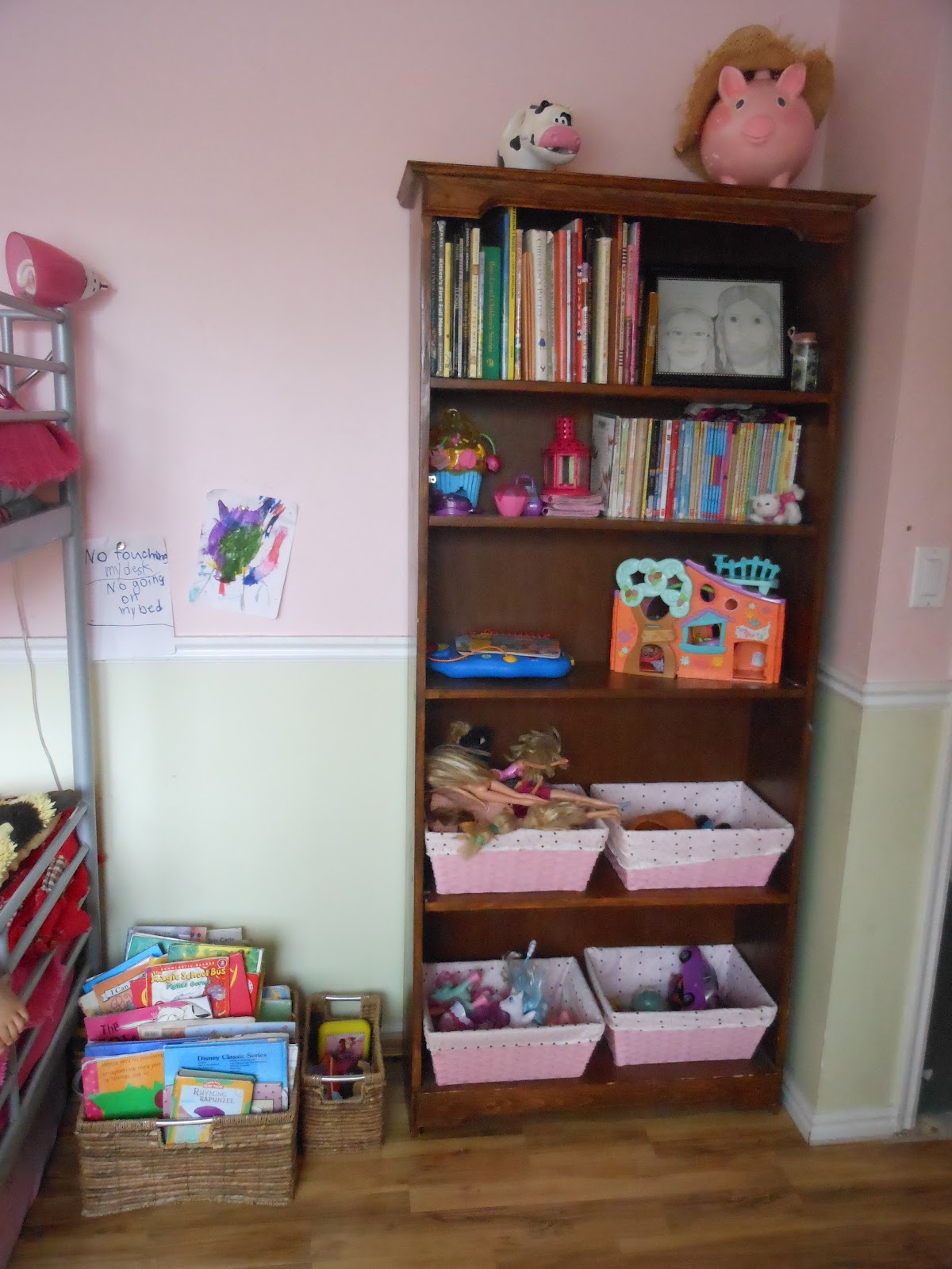 The new floor in the girls room is 99% done. We still need to put some molding around the edges but for now this is what we have. It is such a delightful difference from that awful carpet. Here are some pictures of the new floor and 3 girls sharing a room. This post is mostly for me to remember what their room looked like and what items they really liked to play with at this age.
